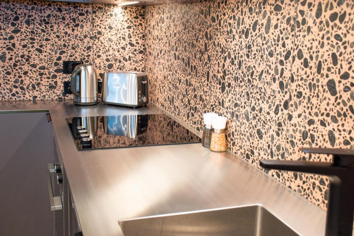 The apartment has a fully equipped kitchen.