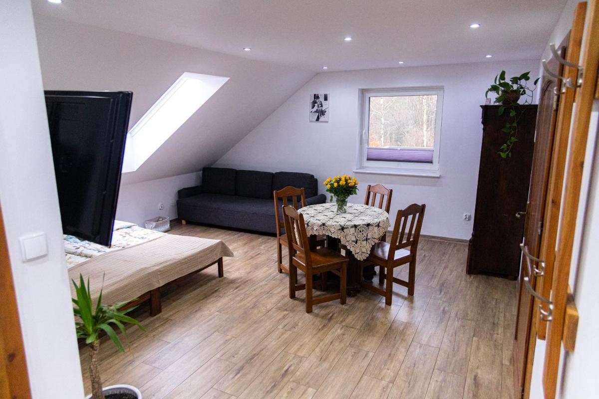 Buczylas Siedlisko, nestled between picturesque landscapes and historical sites, offers an exceptional accommodation experience just 10 miles from the imposing Teutonic Fortress and 29 miles from the enchanting Bory Tucholskie National Park. This charming apartment boasts a private entrance, ensuring ease-of-stay for visitors, and comes with complimentary access to free-private parking, making it perfect for those looking to explore the local area comfortably. Guests will appreciate the apartment’s well-equipped kitchenette, complete with a refrigerator, dining area, and flat-screen TV, along with additional amenities such as a fully functional bathroom featuring a shower and hairdryer, a stove-top, cooking utensils, and a kettle.