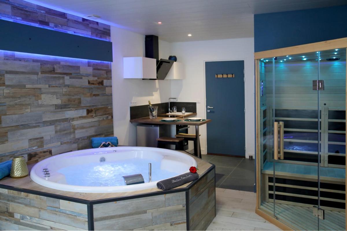 At Bulles Emotions, each unit provides an inviting atmosphere complete with a fully equipped kitchen featuring amenities such as a dining table, flat-screen TVs with streaming services, and a coffee machine. Private bathrooms come equipped with walk-in showers, hair dryers, and free toiletries. Additional conveniences include an oven, fridge, stove top, and a kettle.
