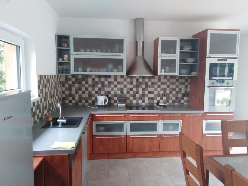 Bungalov v Krásné Lípě, located approximately 29 kilometers from Königstein Fortress, offers accommodation in Krásná Lípa. This charming property features free Wi-Fi, free private parking, and facilities designed for guests with disabilities. Guests can enjoy panoramic views of their surroundings through the apartment's terrace and garden. The spacious apartment boasts two bedrooms, a fully-equipped kitchen, and a flat-screen television. The bathroom, equipped with a walk-in shower, is accessible for guests with mobility needs. Additional amenities include towels and bed linens, as well as a seating area and fireplace. Yoga sessions within the property provide guests with the opportunity to unwind during their stay. The nearby castle, Castle Oybin, is just 16 kilometers away, offering visitors a glimpse into history and culture. Additionally, the property caters to families with various facilities such as an outdoor play area and a baby safety gate for children. Post-ski, cycling, or hiking adventures can be enjoyed in the garden or the shared lounge area, ensuring guests have ample opportunities to recharge after exploring the surrounding landscapes.