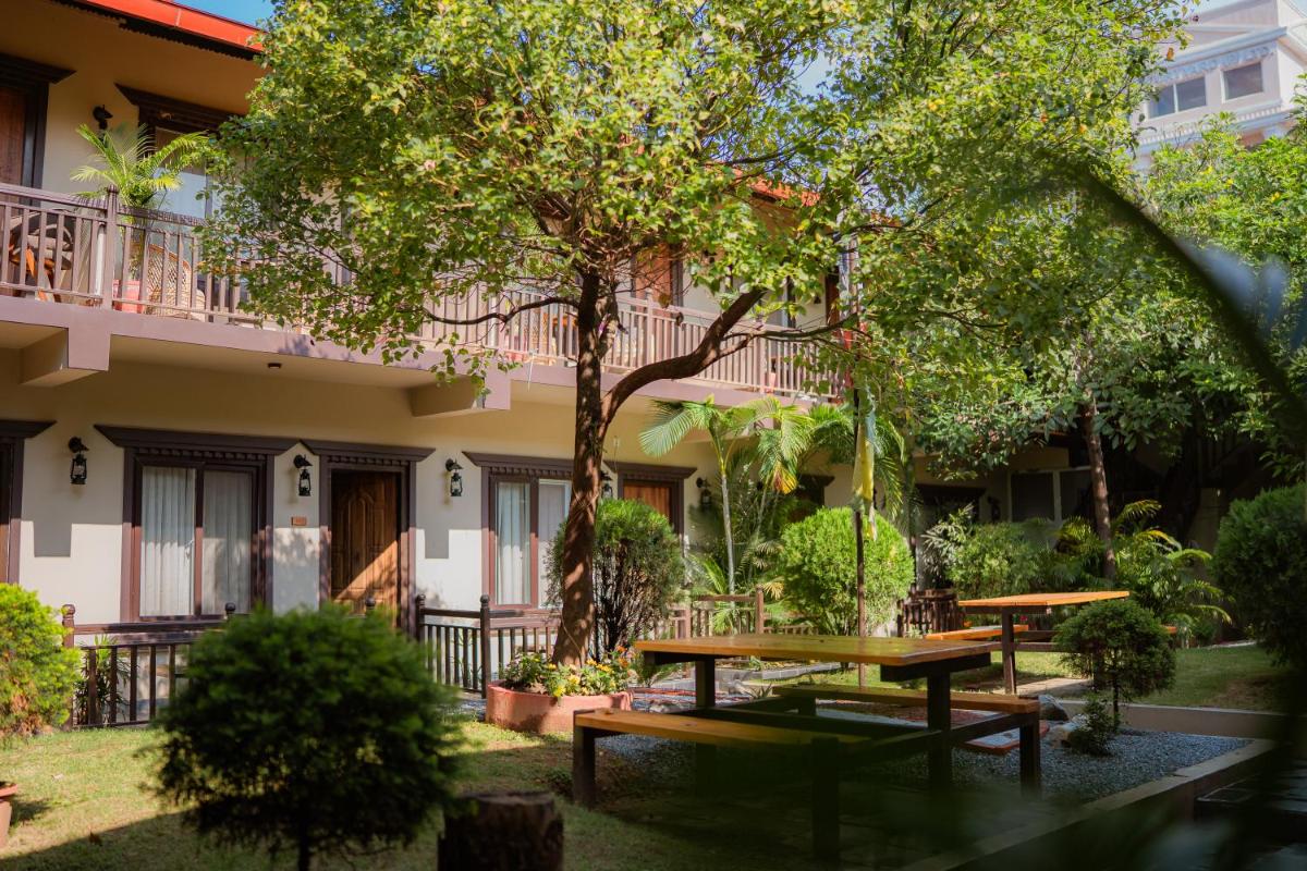 The picturesque Pokhara Lakeside resort, Busy Bee Resort, offers a tranquil retreat just minutes from bustling Pokhara Lakeside. This 3-star accommodation features an inviting terrace, free private parking, a well-maintained garden, and a shared lounge. Guests appreciate its accuracy in describing and showcasing the property's amenities, including an outdoor swimming pool and complimentary WiFi throughout the rooms. Each air-conditioned suite comes complete with a flat-screen TV, electric teapot, shower facilities, free toiletries, and a desk. The resort caters to both couples and solo travelers alike, as evidenced by their high rating of 9.0 out of 10 for a two-person stay. Conveniently located within walking distance of popular attractions such as Fewa Lake, Tal Barahi Temple, and Baidam Temple, this serene getaway ensures a memorable experience amidst the scenic beauty of Pokhara.