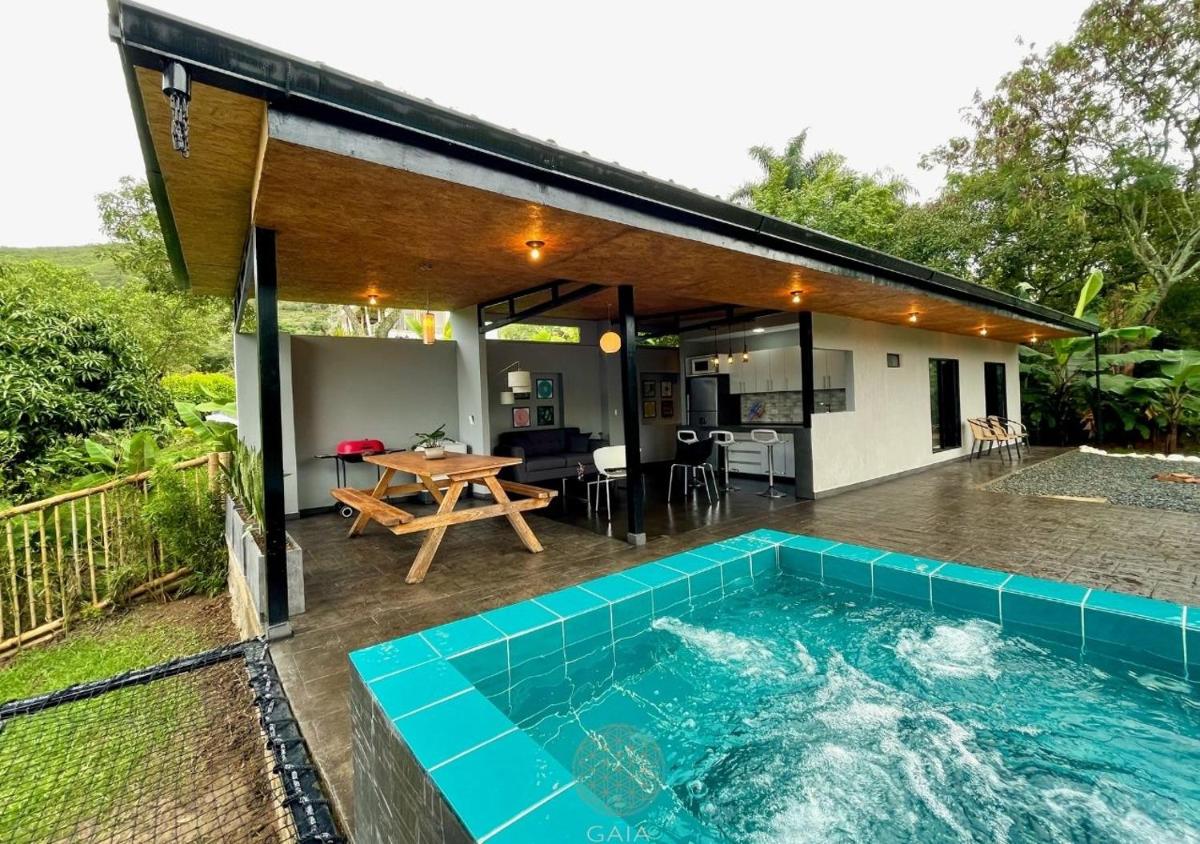 The Gaia Origen Ecohotel - Centro de Bienestar Holístico, situated approximately 4.1 miles from Jorge Isaacs Theater in Cali, Colombia, offers an idyllic retreat nestled among lush gardens. Each unit features a spacious terrace offering breathtaking mountain vistas, complete with a private bathroom equipped with a hot tub for relaxation. The eco-friendly accommodation includes a fully equipped kitchenette with essential appliances such as a microwave and refrigerator, ensuring guests have everything they need for self-sufficiency. A complimentary breakfast basket is included upon arrival, enhancing the stay's convenience.