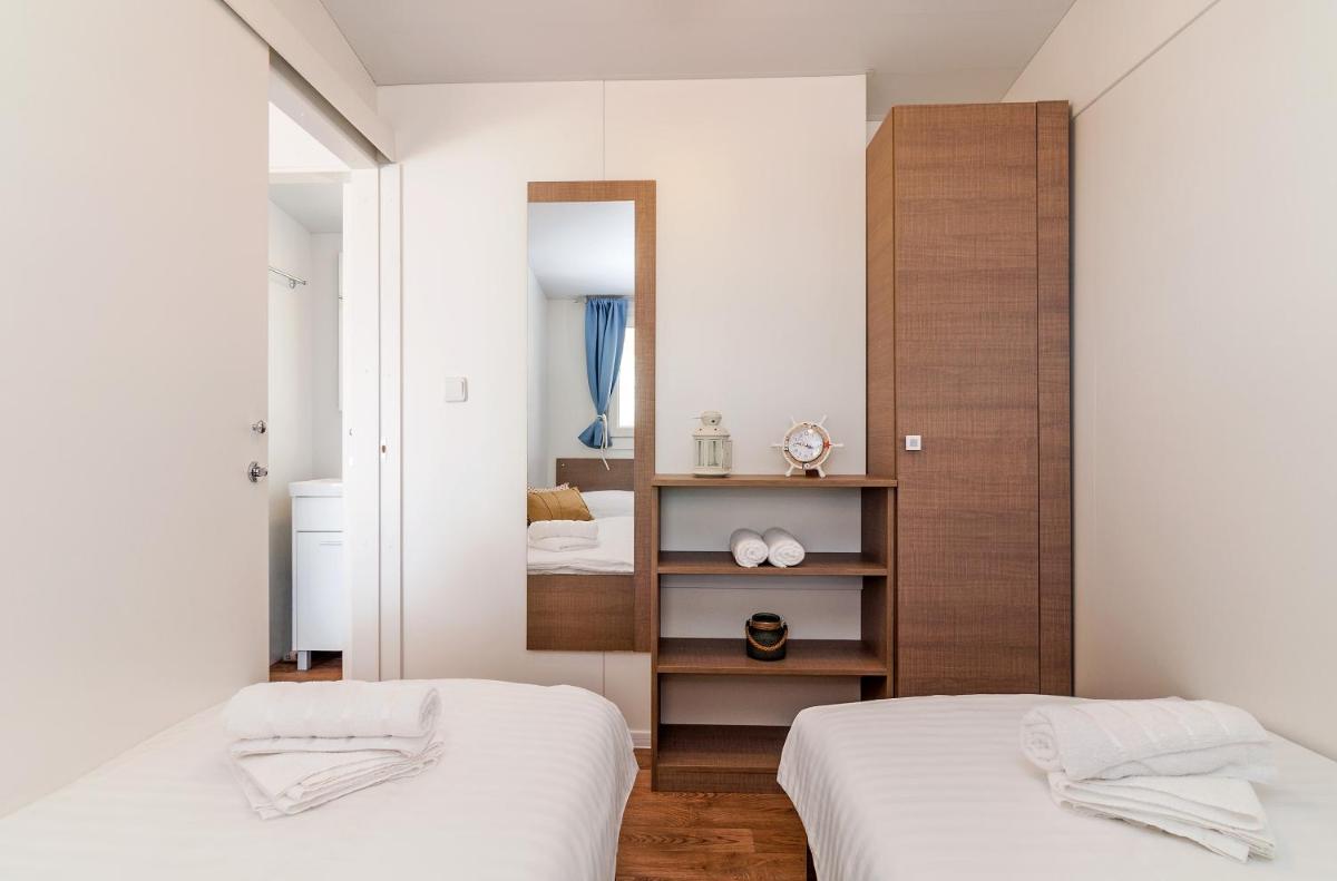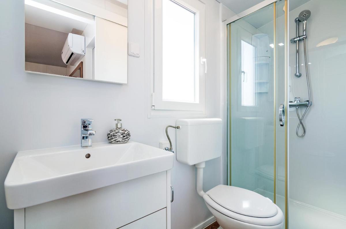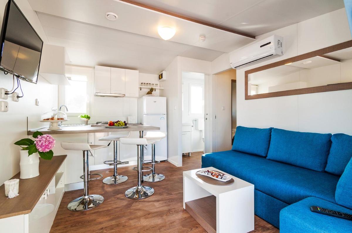 Ispunjavate uvjete za popust u objektu Camp San Antonio! Za ovu uštedu samo se trebate prijaviti.Kamp San Antonio nalazi se u Biogradu na Moru u Zadarskoj županiji, na 300 metara od plaže Bošana, te ima besplatan WiFi, opremu za roštilj, vrt i besplatno privatno parkiralište.Sve su jedinice klimatizirane, a uklju�?uju TV ravnog ekrana, dnevni boravak s kau�?om, dobro opremljenu kuhinju s blagovaonicom te vlastitu kupaonicu s tušem, sušilom za kosu i besplatnim kozmeti�?kim priborom. Na raspolaganju su mikrovalna pećnica, hladnjak, plo�?a za kuhanje i elektri�?no kuhalo.U sklopu objekta dostupna je i terasa za sun�?anje.U okolici gosti mogu uživati u pješa�?enju, ronjenju i vožnji bicikla.Popularne zanimljivosti u blizini kampa San Antonio uklju�?uju plažu Iza Banja, plažu hotela Croatia i marinu Kornati. Do najbliže zra�?ne luke, Zra�?ne luke Zadar, ima 24 miles. Objekt uz nadoplatu u ponudi ima uslugu prijevoza iz/do zra�?ne luke.