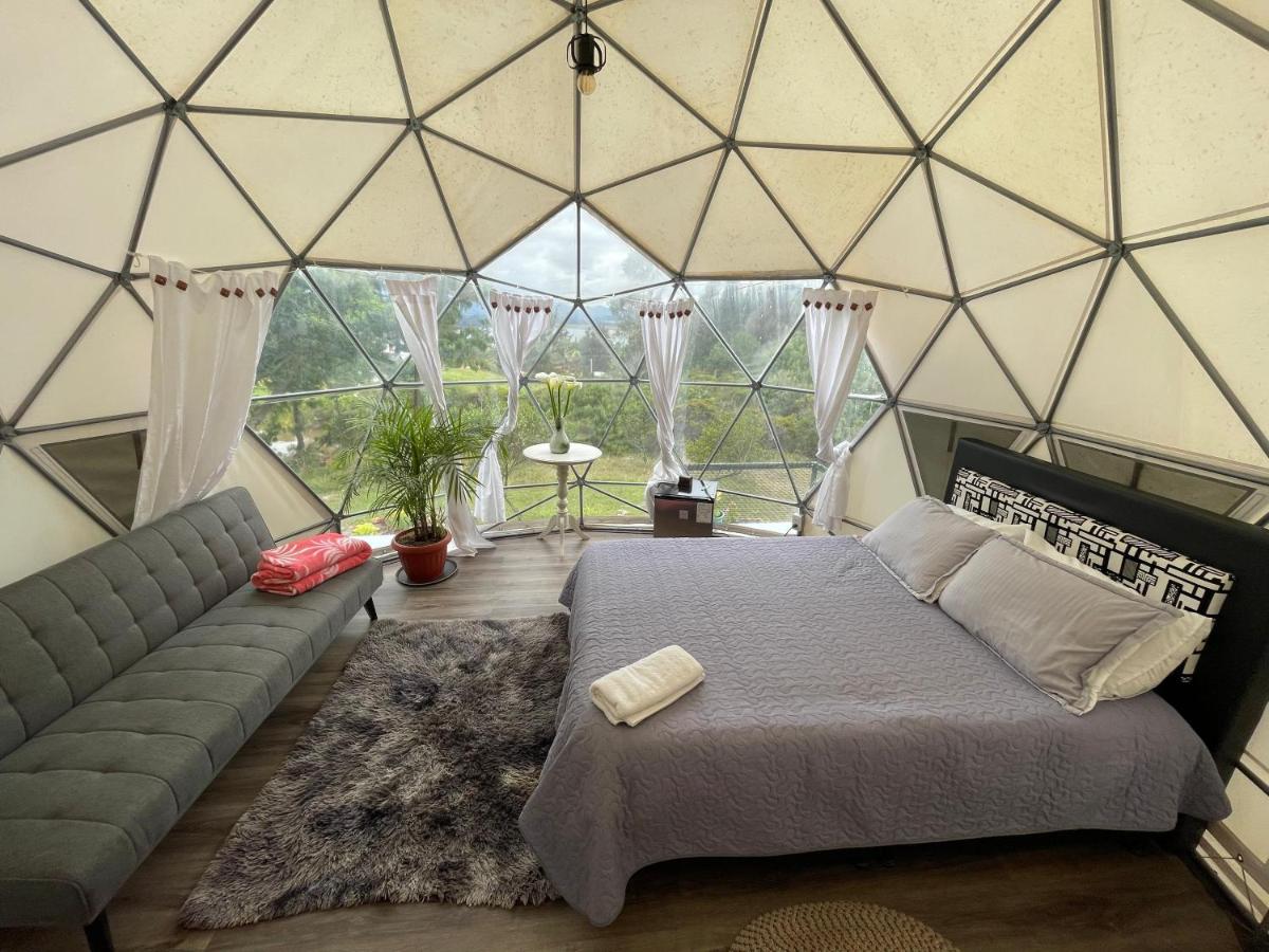 El Alpino Cabaña Glamping & Camping in Guatavita offers guests a tranquil glamping experience with stunning inner courtyard views. This charming accommodation includes a spacious garden, providing ample space for relaxation and enjoying nature's beauty. Accessible via a picturesque patio, guests have easy access to various recreational areas such as the sun terrace and outdoor fireplace, allowing them to bask in the warm sunlight or gather around the firepit under the stars. The serene setting also features breathtaking views of the surrounding mountains and lush gardens, offering a perfect backdrop for both indoor and outdoor activities.