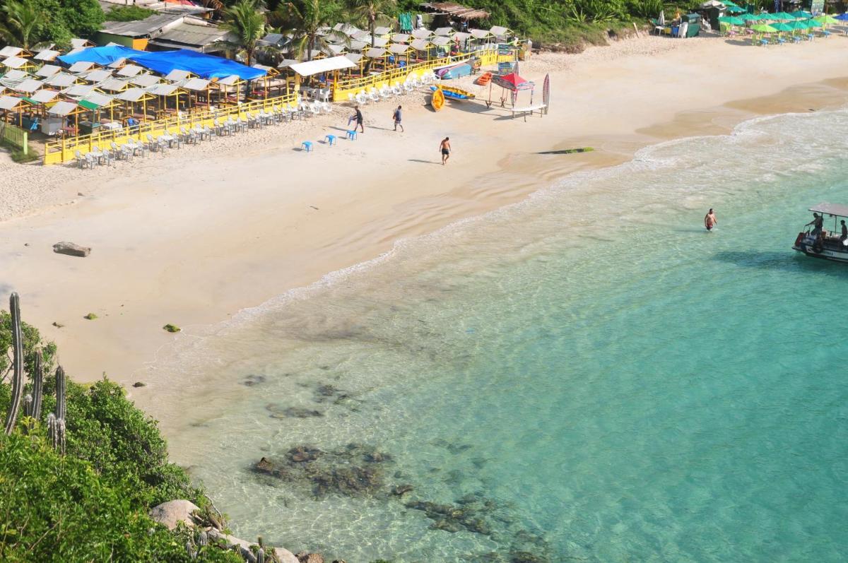 CANTO DA ARVORE 1, situated in Arraial do Cabo, boasts a prime location just 1.2 miles from Forno Beach and a mere 8-minute stroll from Independence Square. This charming apartment dates back to 2014 and features modern conveniences such as a 24-hour concierge service and complimentary Wi-Fi coverage across the premises. Enjoy spacious living areas with tiled flooring, a fully-equipped kitchen equipped with amenities like a microwave and a dining table, along with a flat-screen television offering streaming options. Each unit comes furnished with a fridge, kitchenware, and a coffee maker, ensuring a comfortable stay for guests.