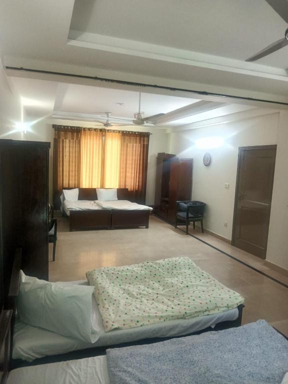 The Capital Guest House in Rawalpindi offers recently renovated family rooms with modern conveniences such as air conditioning, private bathrooms, and work desks. Guests can enjoy free WiFi, a terrace, and an outdoor seating area. Conveniently located 31 miles from Islamabad International Airport, the property is near Bahria Town Phase 1 Gate 1. It includes a shared kitchen, housekeeping services, and free on-site parking. Nearby attractions include the Shah Faisal Mosque (24 miles) and Ayūb National Park (8 miles). The guest house provides Asian breakfast in the room, luggage storage, and free toiletries. Basic facilities include a washing machine, TV, and city views.