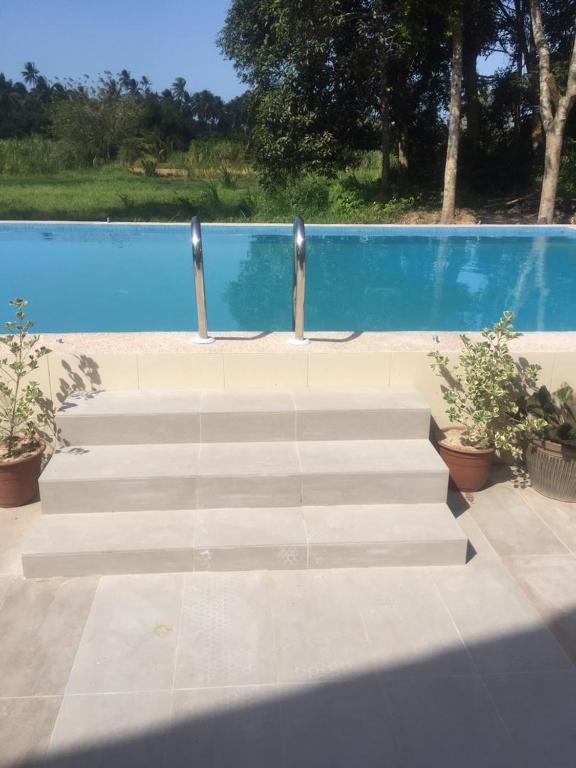 The place comes with a pool and modern shower utilities.