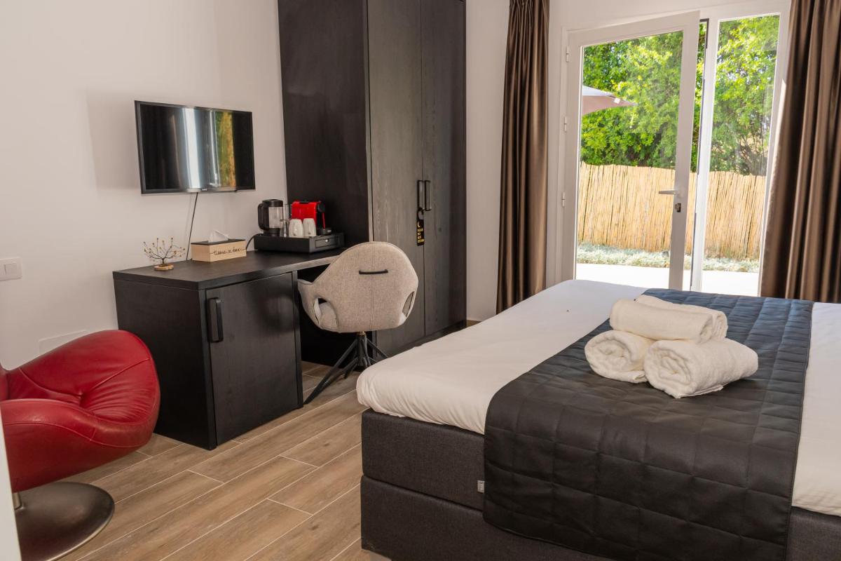 Guests enjoy a comfortable experience, equipped with air-conditioned units featuring a wardrobe, a kettle, a minibar, a safe deposit box, a flat-screen TV, and a private bathroom boasting a walk-in shower. Each room is adorned with bed linens and towels, providing a luxurious stay.