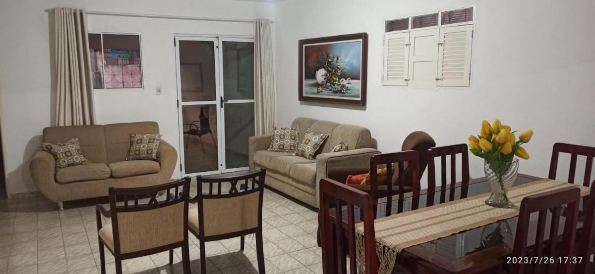 The property at Casa no Centro Bananeiras-PB boasts a well-maintained exterior featuring a spacious terrace offering stunning views. Guests appreciate the detailed descriptions and high-quality photos that accurately reflect its true character. This charming abode is conveniently located just 49 miles from President João Suassuna Airport, making it easy for travelers to reach.