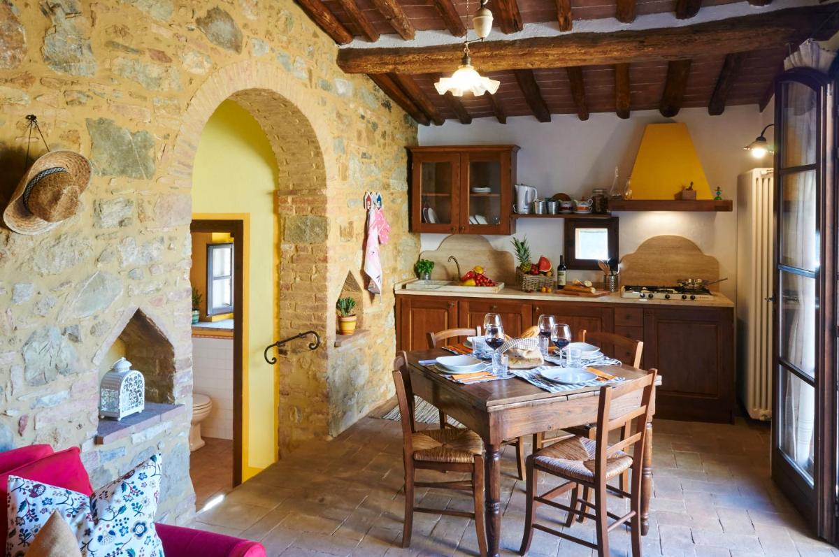 Case Nell' Aia, located in Poggibonsi, boasts well-maintained gardens offering picturesque inner courtyard views. Guests appreciate its proximity to both Piazza Matteotti (21 miles) and Piazza del Campo (22 miles), making it easily accessible. Accommodations feature a spacious patio, seasonable outdoor pool, and WiFi coverage throughout. Each unit includes a terrace with mountain views, a flat-screen TV, fully-equipped kitchens featuring dishwashers and fridges, as well as private bathrooms boasting bidets and hair dryers. Balconies offer garden views. Additionally, every unit comes with bed linens and towels. For convenience, there's free Wi-Fi access, non-smoking rooms, apartments, and free on-site parking. Parking options are also available at the nearby airport.