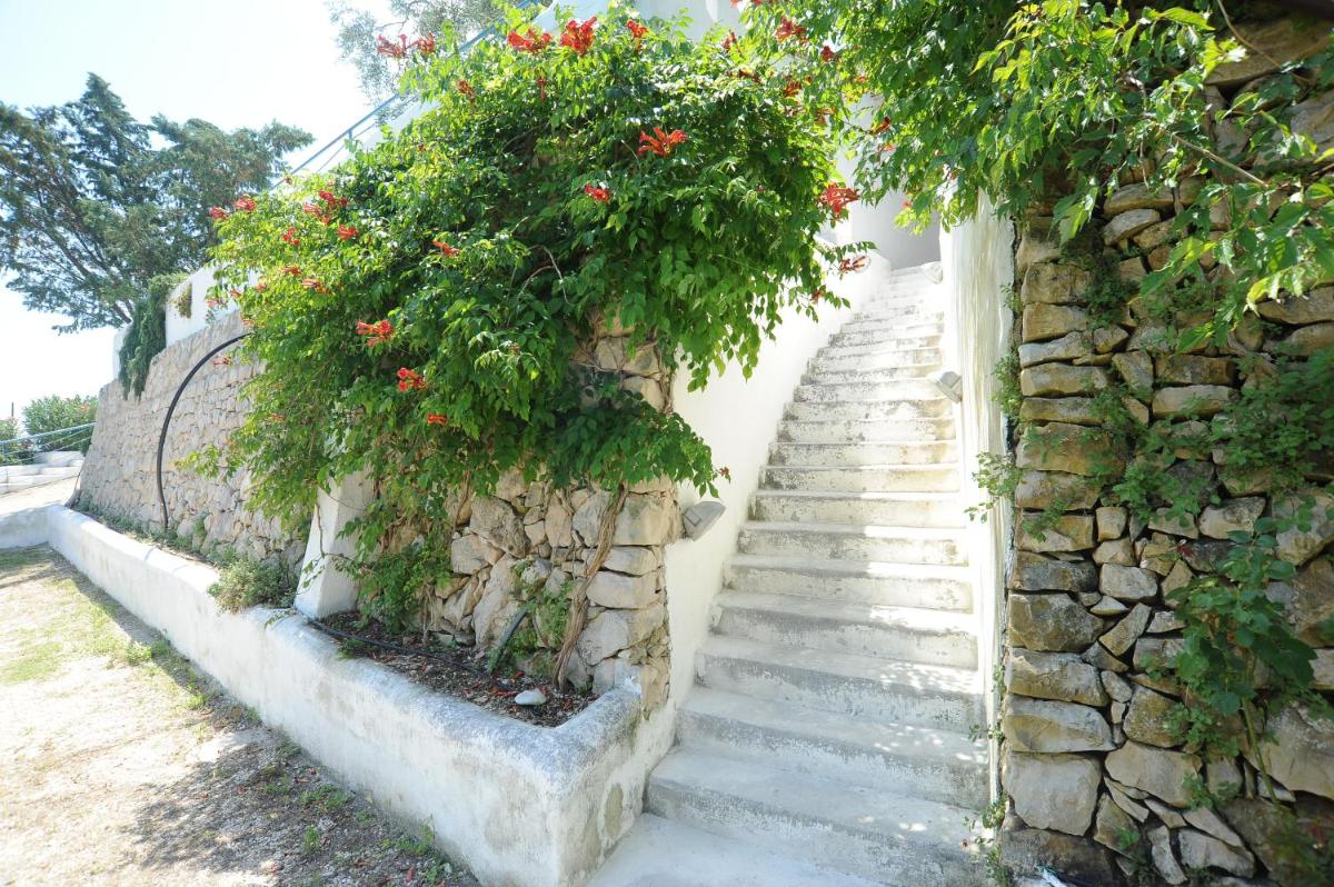 The house is surrounded by olive and lemon trees, herbs and flowers.