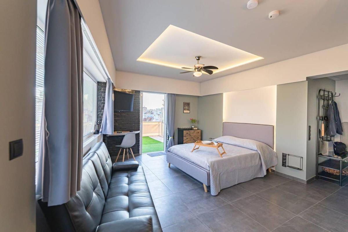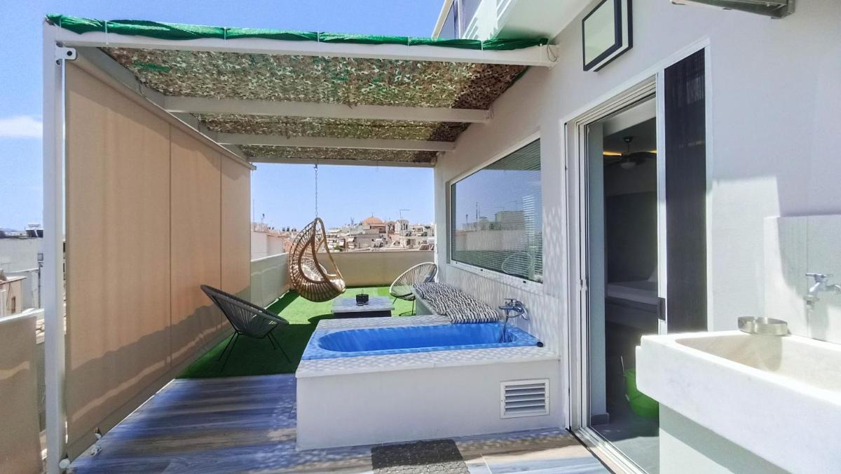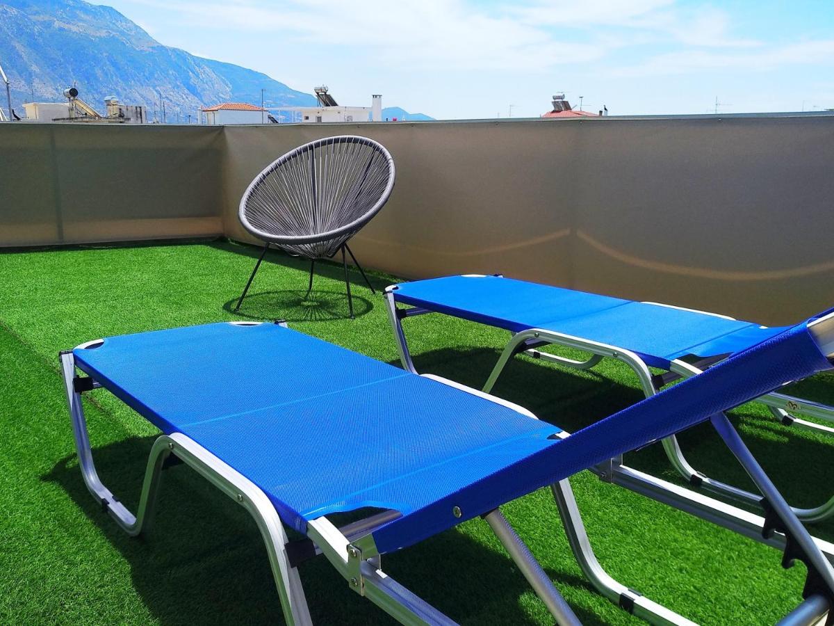 The Tiny Central Penthouse offers cozy accommodations in the charming coastal town of Kalamata. This compact yet comfortable penthouse boasts a spacious terrace, offering breathtaking city views and providing ample opportunity to soak up the sun while enjoying outdoor seating. Situated just 1.3 miles from Kalamata Beach and within walking distance of the renowned Benakeion Archaeological Museum, guests will find themselves immersed in both history and nature's embrace.