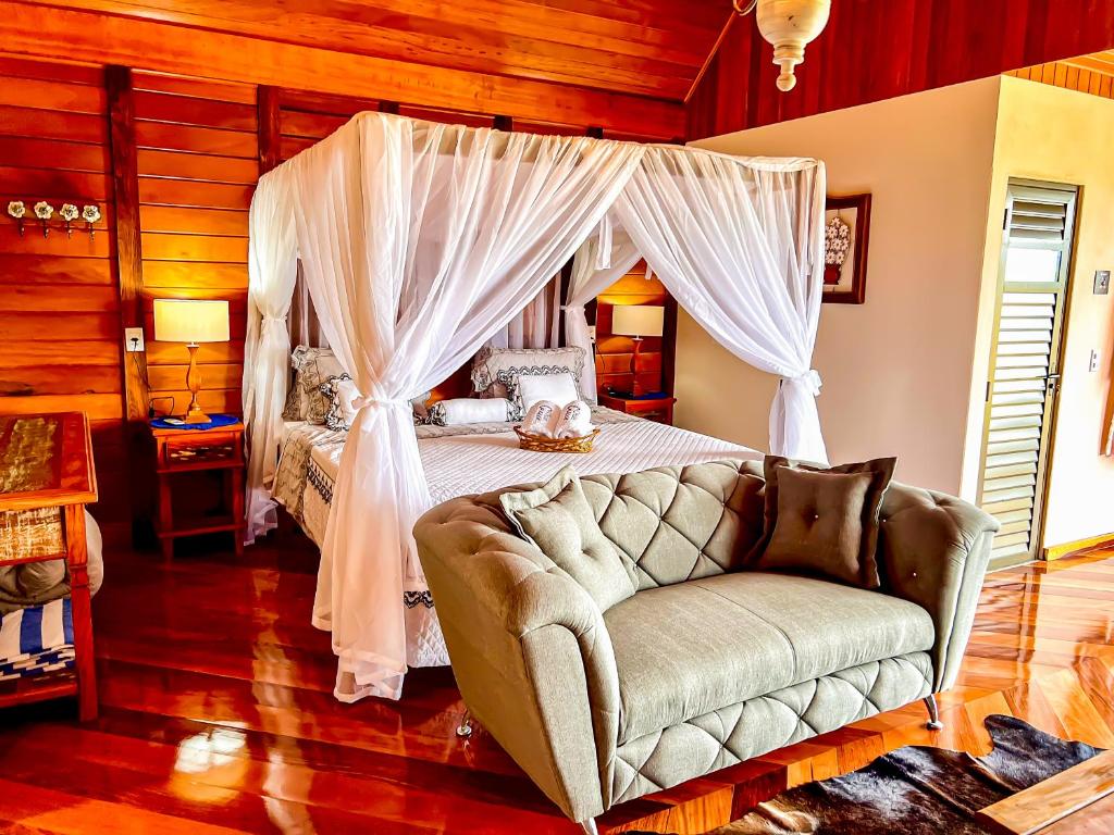 Chalés Grecco, nestled in Venda Nova do Imigrante, Espírito Santo, offers accommodation with complimentary Wi-Fi and free private parking. Guests enjoy access to a luxurious hot tub, making their stay both relaxing and convenient. Each unit features cable flat-screen TVs, fully equipped kitchens with fridges, and private bathrooms boasting showers and complimentary toiletries. The lodge's outdoor space includes a grill and a serene garden, perfect for enjoying nature while exploring the area. Situated approximately 72 miles away from Vitória Airport, this destination welcomes couples who appreciate its prime location, scoring high marks for its suitability for two-person trips.