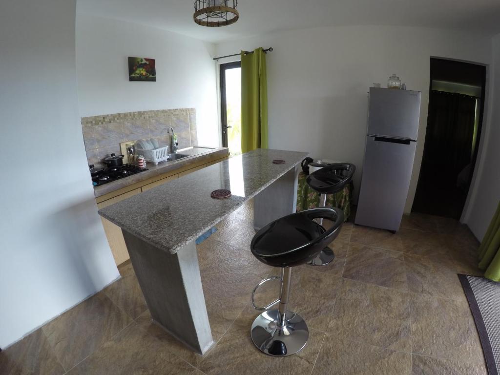 Chamarel Mirador, located within the charming village of Chamarel, offers a serene retreat with breathtaking mountain vistas. This modern apartment complex boasts a variety of amenities designed to enhance the guest experience. Guests enjoy access to free Wi-Fi, ensuring connectivity throughout their stay. The spacious units feature air conditioning, providing comfort during warmer months. Each unit includes a seating area, flat-screen TVs with satellite channels, and fully equipped kitchens, making cooking meals a pleasure. Dining areas offer ample space for enjoying meals, while balconies provide picturesque views of the surrounding landscape. For convenience, there’s a laundry facility, though no mention was made of a mini-market inside the apartment itself.