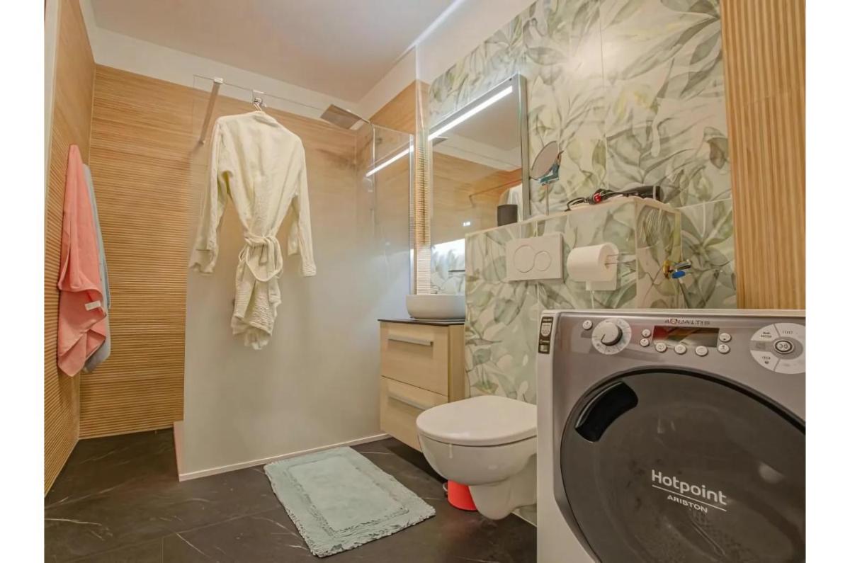 The spacious apartment boasts a modern layout featuring a comfortable living room, fully-equipped kitchen with a dishwasher and oven, as well as ample storage space. Guests can relax by the private terrace or enjoy meals al fresco under the gentle sunlight.