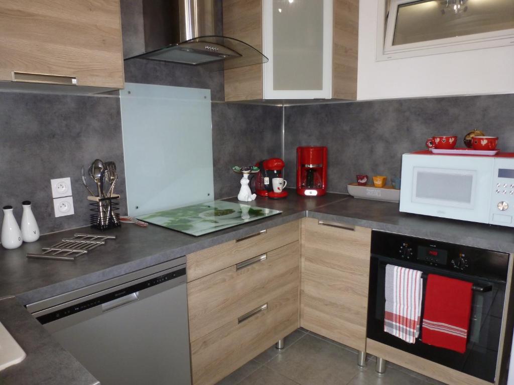 Chic et douillet offers free Wi-Fi, a flat-screen TV, a washing machine, a fully-equipped kitchen with a dishwasher and oven, a balcony, and pet-friendly accommodation.