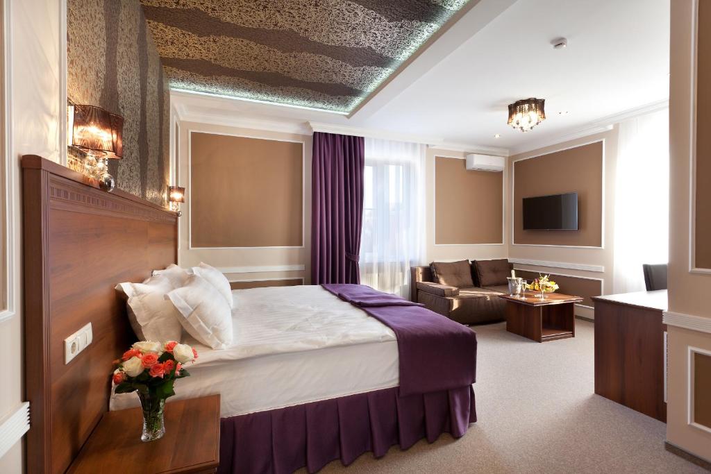 Chocolatier Hotel, located in Krasnodar just 2 miles from Monument Shurik and Lidochka, offers a charming 3-star accommodation featuring a cozy bar and scenic city views. This inviting establishment includes air-conditioned rooms equipped with complimentary WiFi, providing guests with a comfortable stay. Each room comes complete with a private bathroom and amenities such as bed linens and towels, ensuring a pleasant experience. Guests can relish a meal at the hotel's restaurant, where they'll find delicious cuisine served by attentive staff. The 24-hour front desk ensures hassle-free check-ins and check-outs, while luggage storage keeps belongings secure during their visit. For those seeking additional services, room service is available upon request. Located near several popular attractions, visitors can explore the region’s cultural heritage and outdoor activities, including hiking in nearby parks. Additionally, FC Krasnodar Stadium is within 5 miles, making it easy to catch matches or events. Close by, there are various museums worth visiting, such as the 'Типография' museum and historical sites like the 'У Барбары Робертс' monument. With its convenient location and numerous recreational options, Chocolatier Hotel is an ideal choice for travelers looking to relax and enjoy the local area.