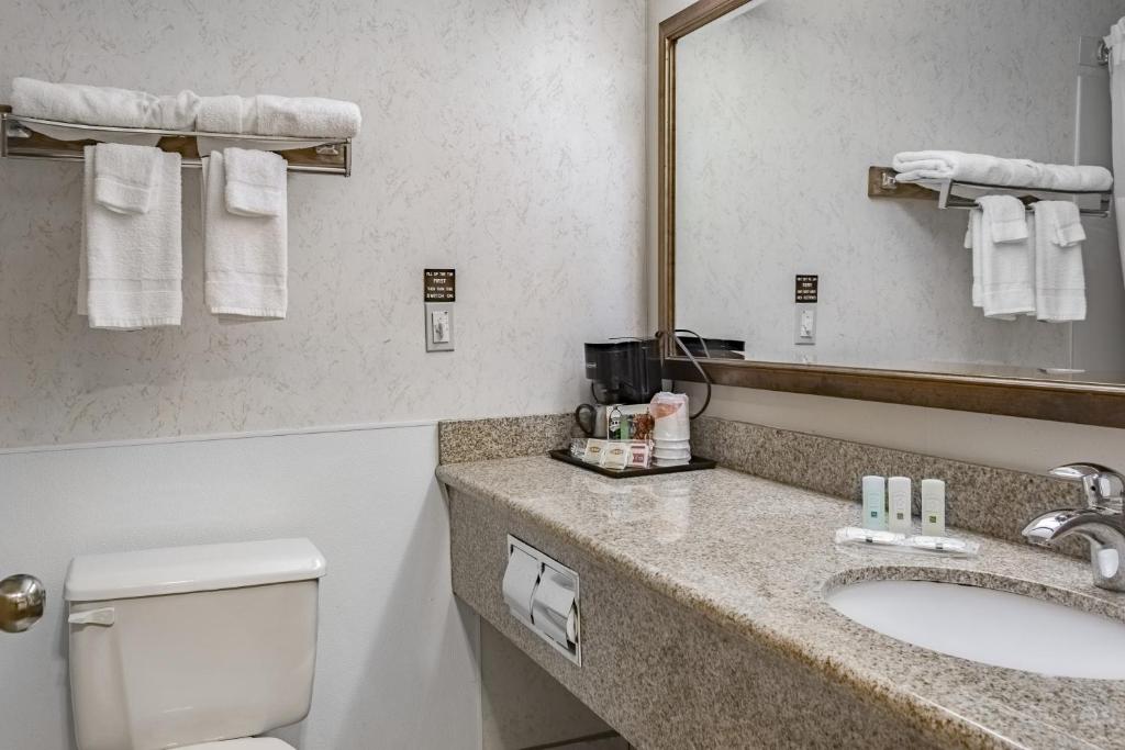 All guest rooms at Quality Inn & Suites® Vancouver North boast a spacious layout featuring a 32-inch flat-screen television with a variety of satellite channels. Soft linens and a small refrigerator provide comfort during their stay. Each room includes a private bathroom equipped with a hairdryer and free toiletries, making every night feel luxurious and welcoming.