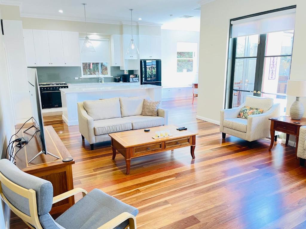 The property offers classic meets modern accommodations with a terrace featuring garden views. Located just 1.3 miles from the National Glass Art Gallery, guests enjoy complimentary access to free Wi-Fi and parking. Non-smoking and centrally located near Wagga Wagga Civic Theatre, the property is conveniently situated within walking distance to the airport and various nearby attractions. Air-conditioned and boasting a fully equipped kitchen, the home includes a flat-screen TV. Enjoy a comfortable stay surrounded by scenic beauty while taking advantage of the property's numerous amenities.
