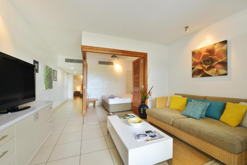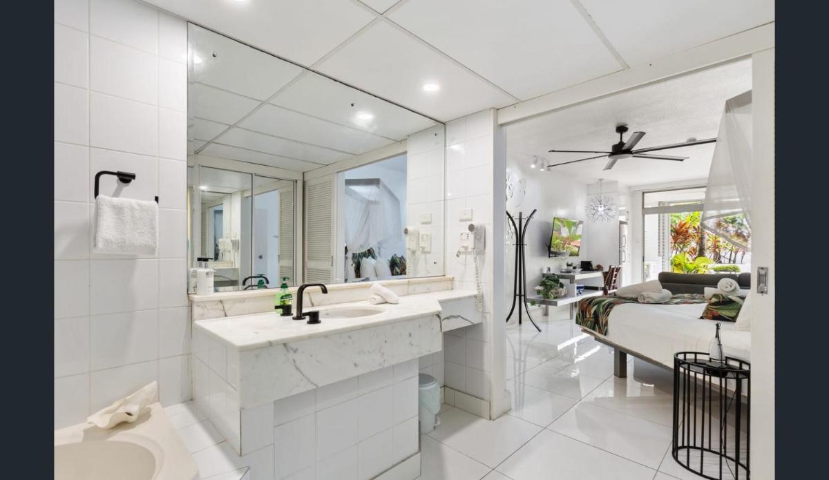 Club Tropical Resort - Official Onsite Reception & Check In offers spacious apartments featuring modern amenities such as air conditioning, ceiling fans, and heating. Each room boasts panoramic views of lush gardens, the Great Barrier Reef, or nearby mountains. Guests enjoy a fully equipped kitchenette, a flat-screen TV via Chromecast, and complimentary WiFi throughout. The resort includes an outdoor swimming pool, two hot spa pools, and a sauna. Laundry facilities and free underground parking are available. Conveniently located near Marina Mirage Port Douglas and Four Mile Beach, the property caters to families and non-smokers.
