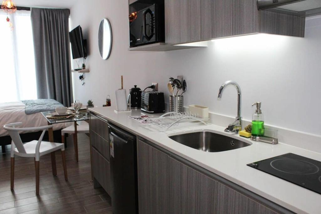 HOM I Confortable Studio Nuevo En Mejor Zona Antofagasta 2117, located in the city, offers accommodation near Playa Club and Paraiso Beach. This beachfront property features an outdoor terrace. Calvo y Bascuñán Regional Stadium is 1.7 miles away and La Portada de Antofagasta is approximately 13 miles from the apartment. Free Wi-Fi, a cable TV, a kitchen equipped with a microwave and a refrigerator, and a double bed are available. Additionally, guests can enjoy a private room. Amenities include elevator access. Nearby buildings feature museums such as the Atacama Desert Museum, the Professor Humberto Fuenzalida Geological Museum, the Antofagasta Regional Museum, the Antofagasta Station Cultural Center, the Historical Museum of Saltpeter ex Casa Abaroa and the University of Antofagasta Sea Museum. This 30-square-meter space offers panoramic views of the city.