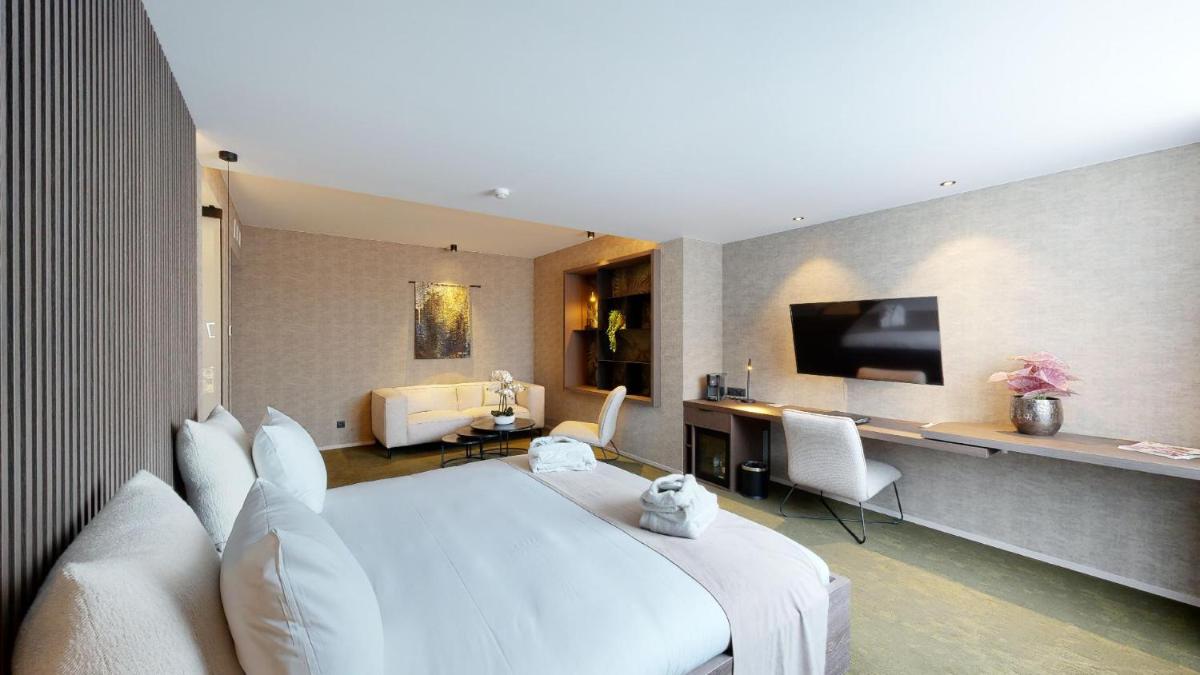 Guests can indulge in a range of amenities at this luxurious establishment, starting with the modern suite equipped with state-of-the-art technology, including a flat-screen TV, Leonidas chocolates, a convenient coffee maker/boiler, and a tastefully appointed bathroom featuring a walk-in shower and luxurious toiletries. For those looking to unwind, the hotel’s wellness area includes a sauna, a hammam, and a fitness room, along with an à la carte restaurant offering breathtaking views from its terrace.