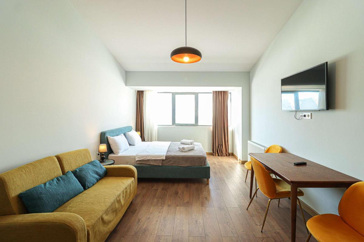 Equipped with amenities such as a fully functional living room featuring a television, guests will find everything they need to unwind after a long journey. The apartment also provides complimentary towels and bed linens, enhancing their stay with a touch of luxury.