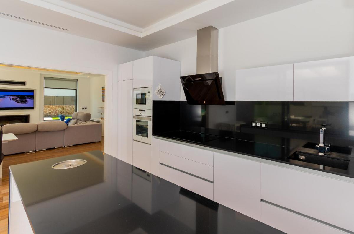 The villa boasts a spacious terrace offering stunning mountain views, perfect for unwinding after a day spent exploring nearby attractions. Equipped with modern amenities, the villa includes a satellite TV, a fully equipped kitchen featuring a dishwasher, an oven, and a microwave, allowing for culinary creativity within the comfort of one's own home. Four spacious bathrooms, each equipped with a bathtub, provide a comfortable space for rest and relaxation.