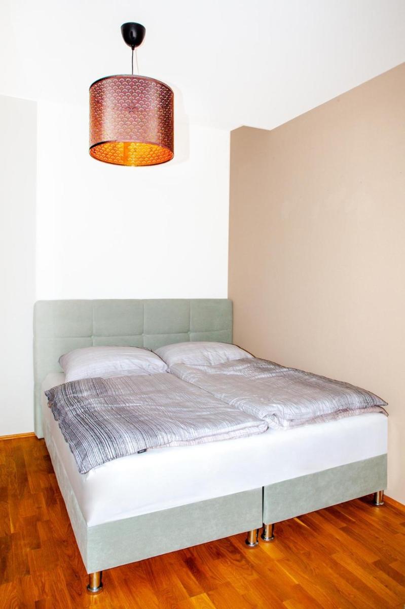 The apartment and its size with two bedrooms and a sofa bed