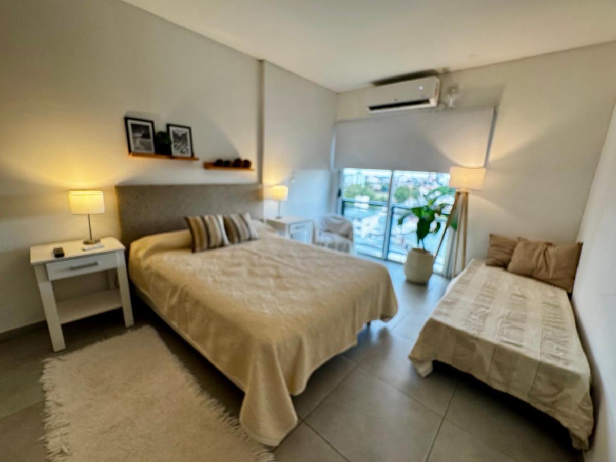 Departamento Studio, located in Corrientes, offers breathtaking river and city views. This modern, air-conditioned apartment features a fully-equipped kitchen, a comfortable seating area, a spacious dining area, and a flat-screen cable TV. Guests can enjoy free Wi-Fi, a 24-hour front desk, and an elevator. Towels and bed linens are included, ensuring comfort during their stay.