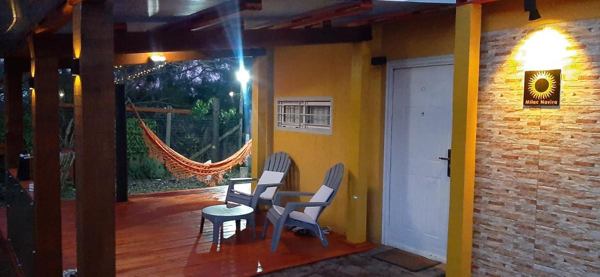 Descanso Milac Navira, located in Minas, offers cozy accommodations just 4.1 miles from Juan Antonio Lavalleja Stadium. This spacious vacation home features an indoor/outdoor fireplace, complimentary Wi-Fi, and ample free private parking. Entering through its private entrance, guests find themselves in a well-kept villa boasting a fully equipped kitchen, including an oven, microwave, and refrigerator. The air-conditioned living area includes a comfortable sofa bed and a cable flat-screen TV. Enjoy stunning mountain views from the balcony. The villa comes complete with one ensuite bathroom. Nearby attractions range from sightseeing tours to scenic bike rides through the lush gardens. Conveniently situated near Capitán de Corbeta Carlos A. Curbelo International Airport, Descanso Milac Navira is the perfect base for exploring the region.