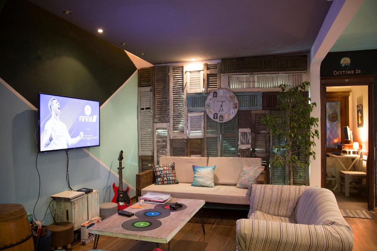 Destino26 Hostel has a common seating area with a TV, a DVD Player, games and a computer. There is also a garden and BBQ facilities.