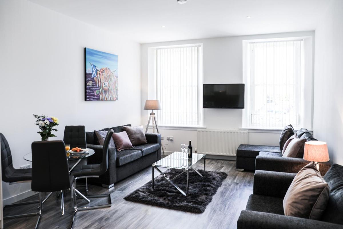 Casa Fresa - King Street Apartments, located in Dundee, boasts an excellent location just 14 minutes' walk from Discovery Point and situated approximately 13 miles from St Andrews University. This charming 4-star accommodation features complimentary Wi-Fi access throughout, making it ideal for guests seeking a stress-free stay. Guests can enjoy a comfortable stay with amenities such as a fully equipped kitchen equipped with a dishwasher, oven, microwave, toaster, and refrigerator, along with a coffee maker and kettle. Additional perks include an ironing facility, a seating area with a sofa, and a flat-screen television with cable channels.