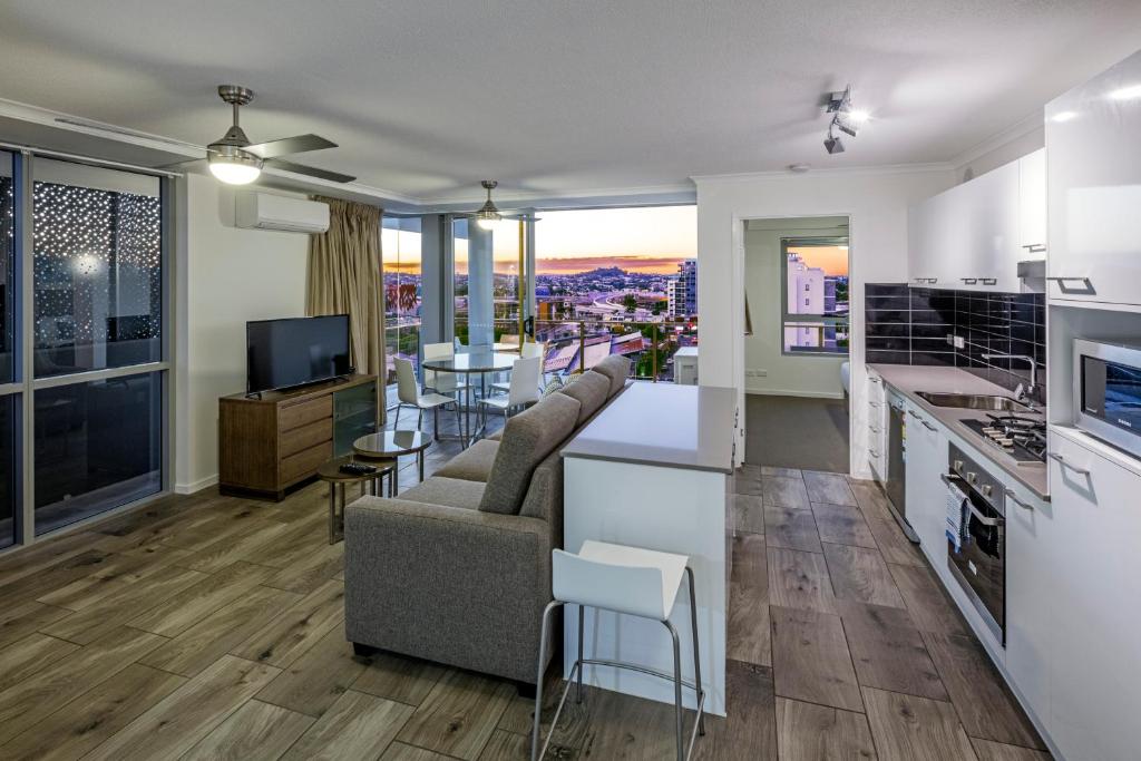 The Pavilion and Governor on Brookes offers self-contained accommodation in two separate buildings situated near RNA Showgrounds and Royal Brisbane Womens Hospital. Each apartment boasts a balcony, modern decor, and free Wi-Fi, making guests feel at home. Conveniently located just 2133 feet away from Bowen Hills Train Station, guests can easily access various amenities such as local restaurants, bars, and cafes. Enjoy a rooftop terrace with BBQ facilities overlooking the surroundings. Inside, each unit features an air-conditioned living space, fully-equipped kitchen with a dishwasher, laundry facilities, and a spacious bathroom with a shower and complimentary toiletries.