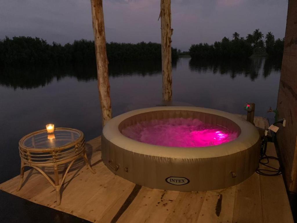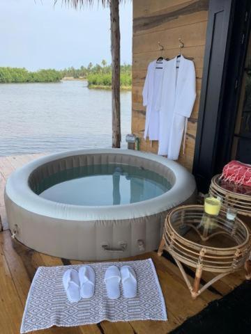 Dolce Ouidah Lodge, nestled near Ouidah, boasts a luxurious villa featuring two bedrooms, a spacious living room, a private beach area, a swimming pool with breathtaking views, a sun terrace, and a lush garden. This elegant accommodation includes an outdoor bath, a hot tub, free WiFi, a solarium, barbecue facilities, and private parking. Rooms come equipped with air conditioning, bathrobes, and private bathrooms. Enjoy the tranquility of the poolside, relax on the sun terrace, and savor continental and à la carte breakfasts. Accessible via easy routes, guests can explore nearby attractions such as the Ouidah Museum of History and the Cotonou Cadjehoun Airport.