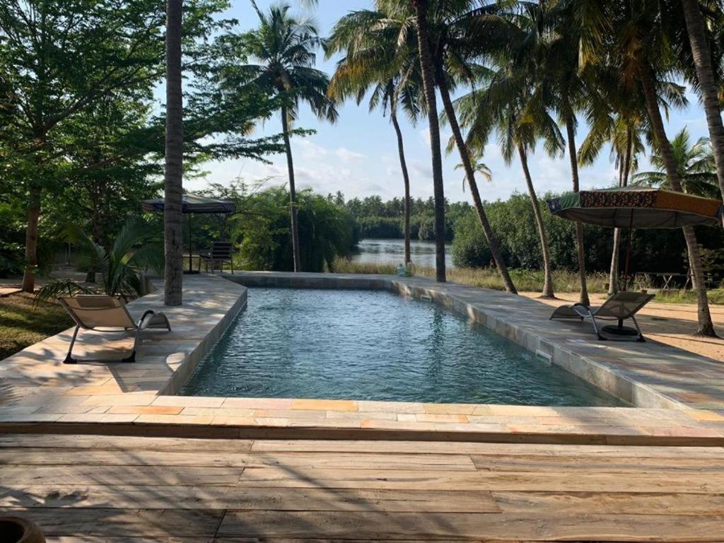 The Dolce Ouidah Lodge offers various amenities including an outdoor swimming pool, free Wi-Fi, free parking, room service, non-smoking rooms, a private beach area, a private sun terrace, a barbeque facility, continental and à la carte breakfasts, and a view.