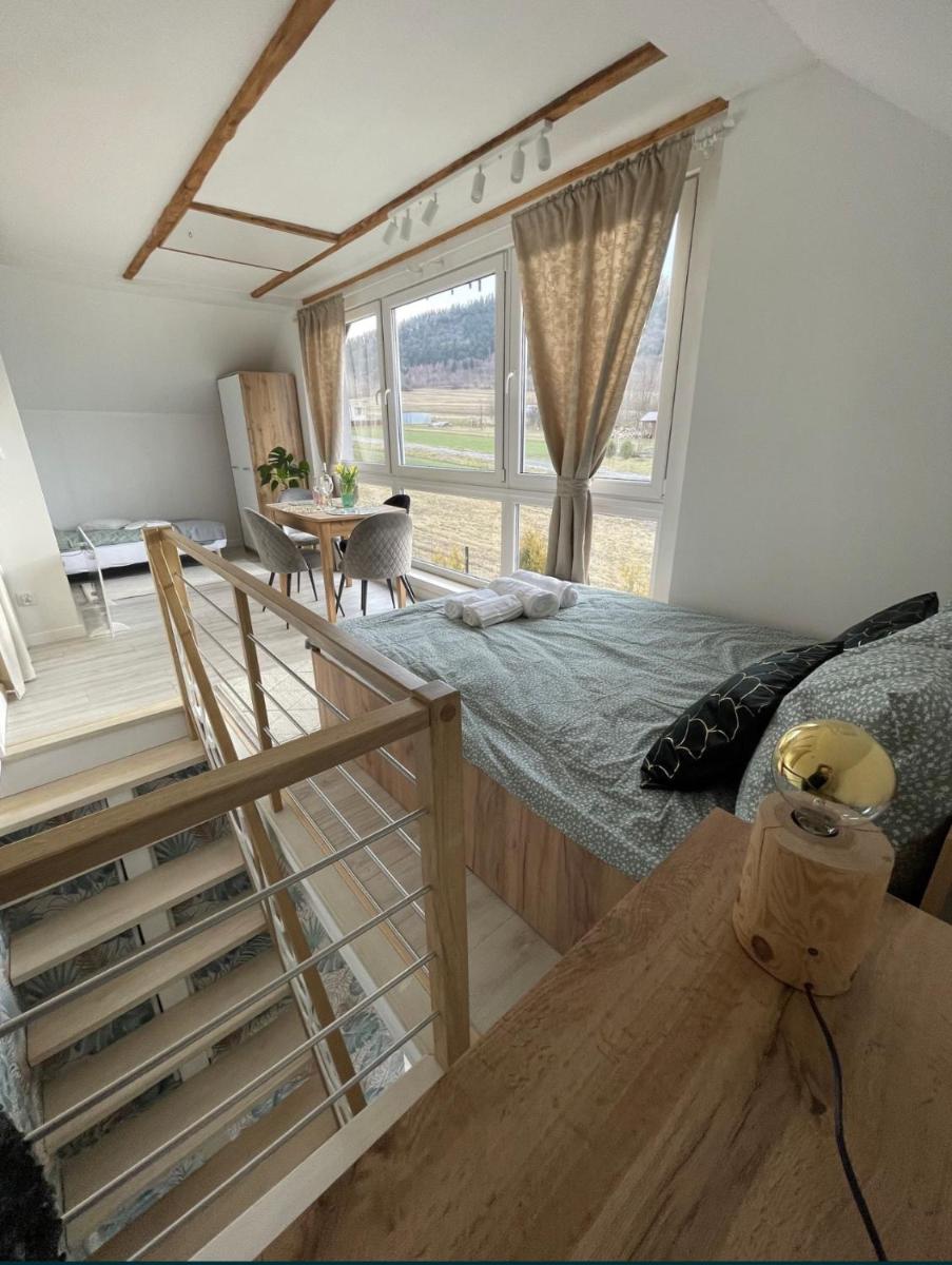 Domek z Widokiem Na Bliżniaki offers a cozy retreat located approximately 37 kilometers northeast of the renowned Auschwitz-Birkenau Memorial and Museum. This charming accommodation features a beautifully landscaped garden and boasts a spacious bedroom, complete with private access and state-of-the-art amenities such as a fully-equipped kitchen and flat-screen television with numerous cable channels. Guests can unwind by enjoying meals al fresco on the outdoor terrace, which provides breathtaking views of the surrounding landscape. The private bathroom, air conditioning, and shower facilities enhance the overall comfort experience. With its convenient proximity to John Paul II International Kraków–Balice Airport, just over 47 kilometers away, this property caters well to both solo travelers and couples seeking a tranquil escape amid nature's beauty. Visitors will appreciate the outstanding location, earning a high rating of 9.4 out of 10 for their stay, making it an ideal choice for those planning a memorable journey through Poland's rich cultural heritage.