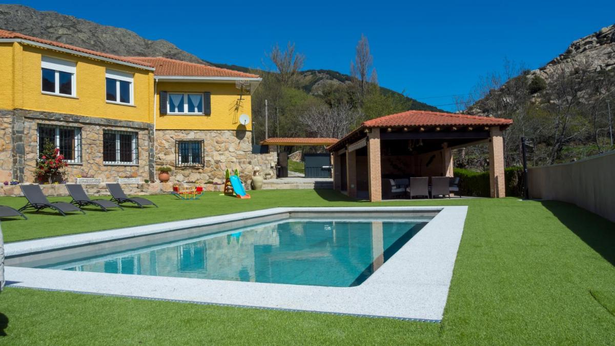 El huertar de Valentín, located in Valdemanco, boasts an inviting open-air bath offering breathtaking garden views. This vacation home provides comfortable accommodation, complete with a private pool where guests can relax and unwind. Free Wi-Fi ensures smooth communication, while ample free private parking allows easy access for those arriving by car. For guests requiring assistance, the establishment caters to disabled individuals with dedicated facilities. The spacious villa includes amenities such as a flat-screen cable TV, a fully equipped kitchen with essential appliances, and five bathrooms featuring hair dryers. Bed linens, towels, and laundry services are included to enhance the guest experience.