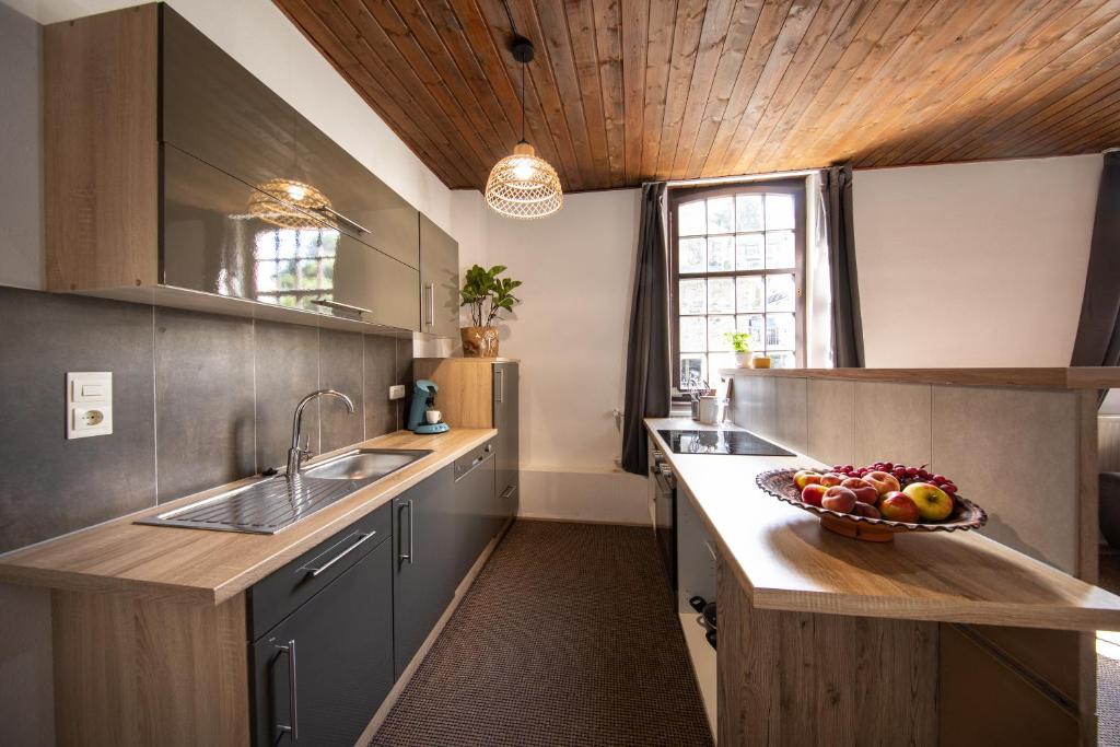 The Elbershof Monschau historic building, nestled in the heart of Monschau, boasts modern apartments offering authentic historical charm combined with contemporary amenities. Each apartment features beautifully restored interiors, complete with free Wi-Fi and a spacious living space equipped with a fully functional kitchen. Satellite television and a private bathroom with a shower enhance the stay. Guests appreciate the high-speed internet connection facilitated by glass fiber technology. Apartments range in size from two to eight people, catering to various group sizes comfortably.