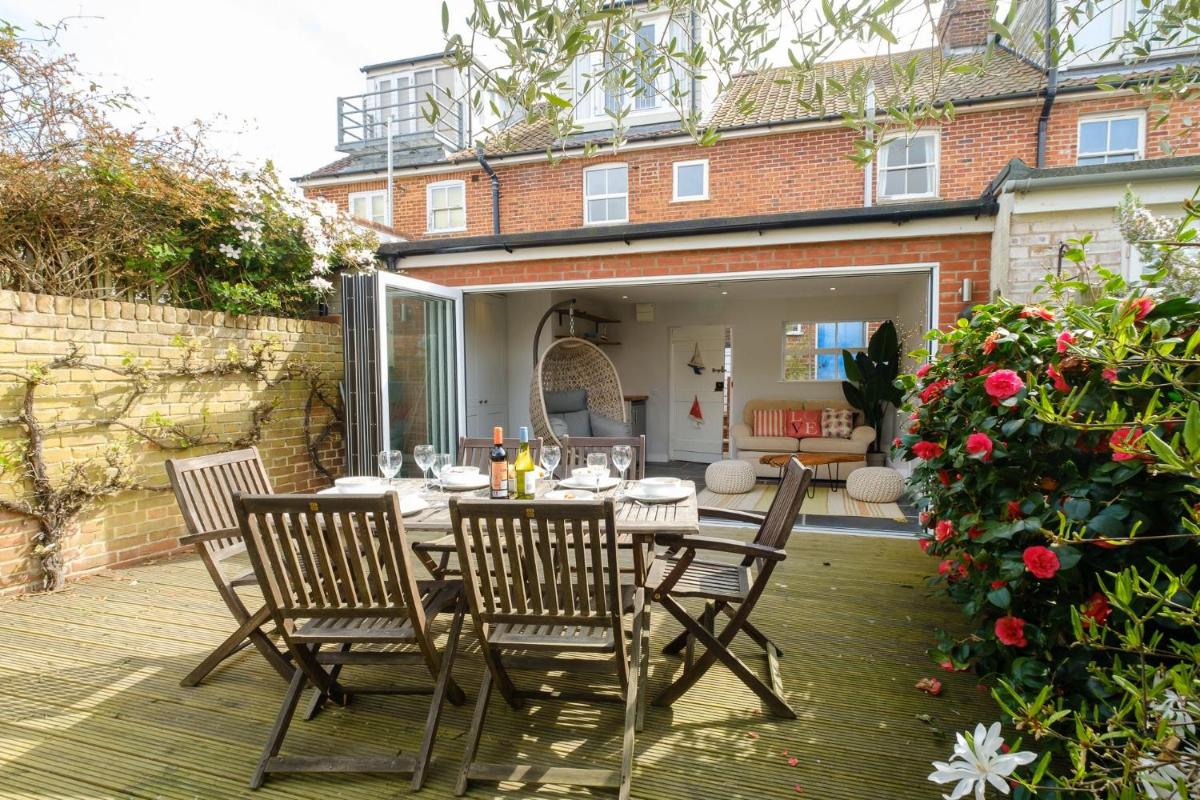 Elm Cottage offers cozy accommodations in Aldeburgh, situated near Sudbourne Beach and just 15 miles from Framlingham Castle. Featuring a patio and free Wi-Fi, this vacation home boasts 3 bedrooms, a fully equipped kitchen with appliances, and ample amenities including a fireplace. Guests enjoy a 3-minute walk to Aldeburgh Beach, and the nearby attractions of Saint Botolph's Burgh (20 miles), Bungay Castle (26 miles), and Norwich International Airport (50 miles). Enjoy the warmth of the season at Elm Cottage's BBQ facilities.