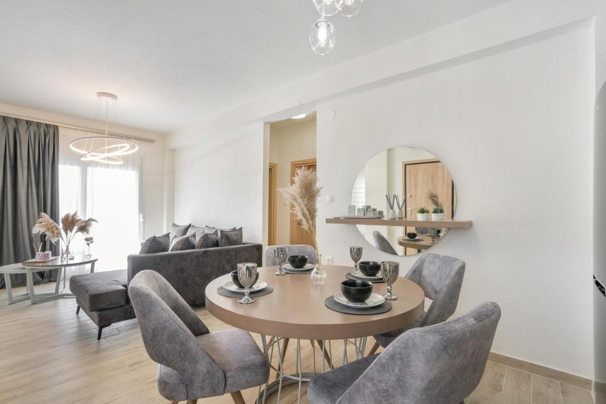 The Emerald Luxury Apartments in Nikiti offer free private parking, complimentary airport shuttles, air-conditioned rooms with balconies and kitchens equipped with appliances, and private bathrooms.