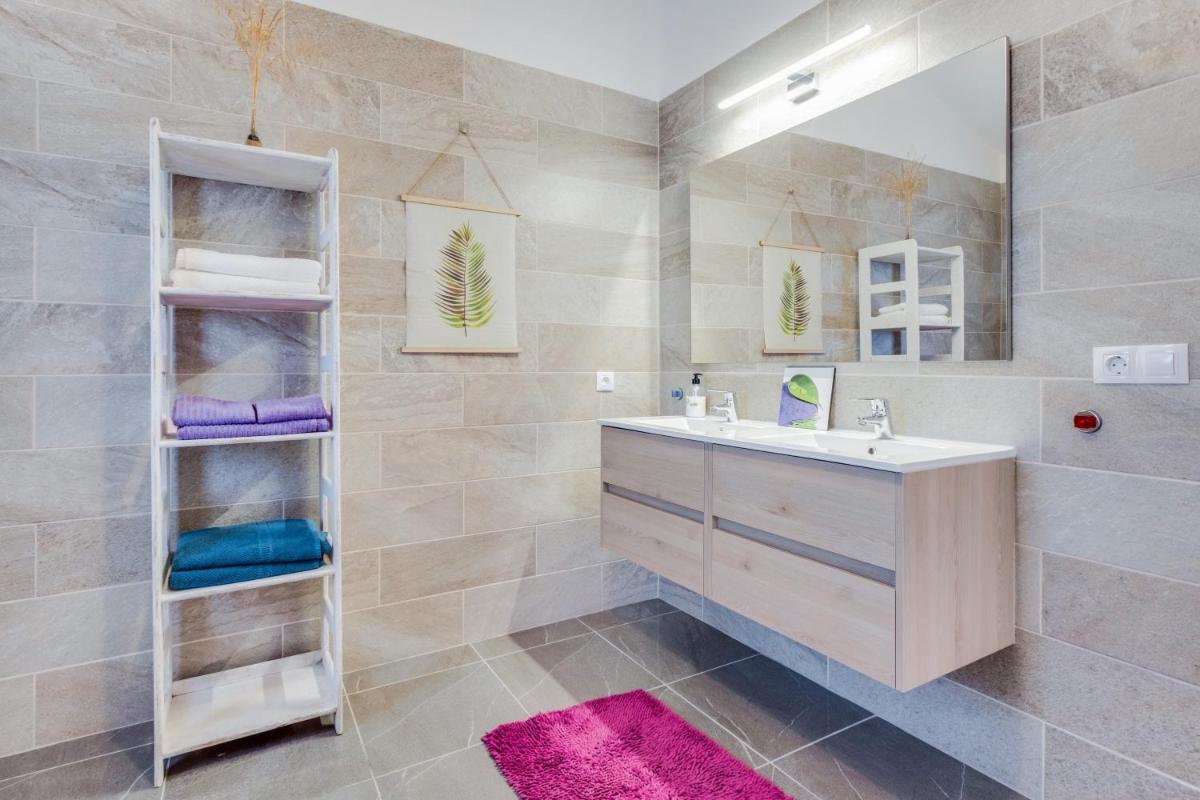 Those seeking relaxation amidst nature will find solace in the tranquil ambiance offered by the BBQ facility. The residence is designed to cater to various preferences, with a private entrance providing additional privacy and comfort. Each bedroom is generously sized at 40 square meters, ensuring ample space for both personal use and family gatherings.