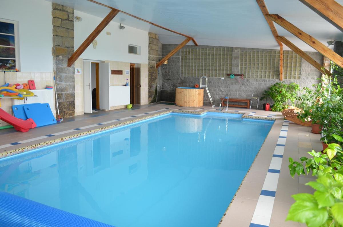 Famozclub, nestled in a picturesque setting, offers an indoor swimming pool filled with soothing saltwater. Guests relish its tranquil ambiance while enjoying amenities such as a sauna, tennis courts, and a charming miniature golf course. With complimentary WiFi, this establishment provides a comfortable retreat where families can unwind together. A delightful restaurant serves up delicious meals, complemented by a spacious bar offering refreshments. For those seeking relaxation, the hotel features a game room equipped with table tennis tables, massage services, and a cozy lounge area. Located near attractions like the Bohemian Paradise Geopark and the historic town of Mnichovo Hradiště, Famozclub ensures a memorable stay.