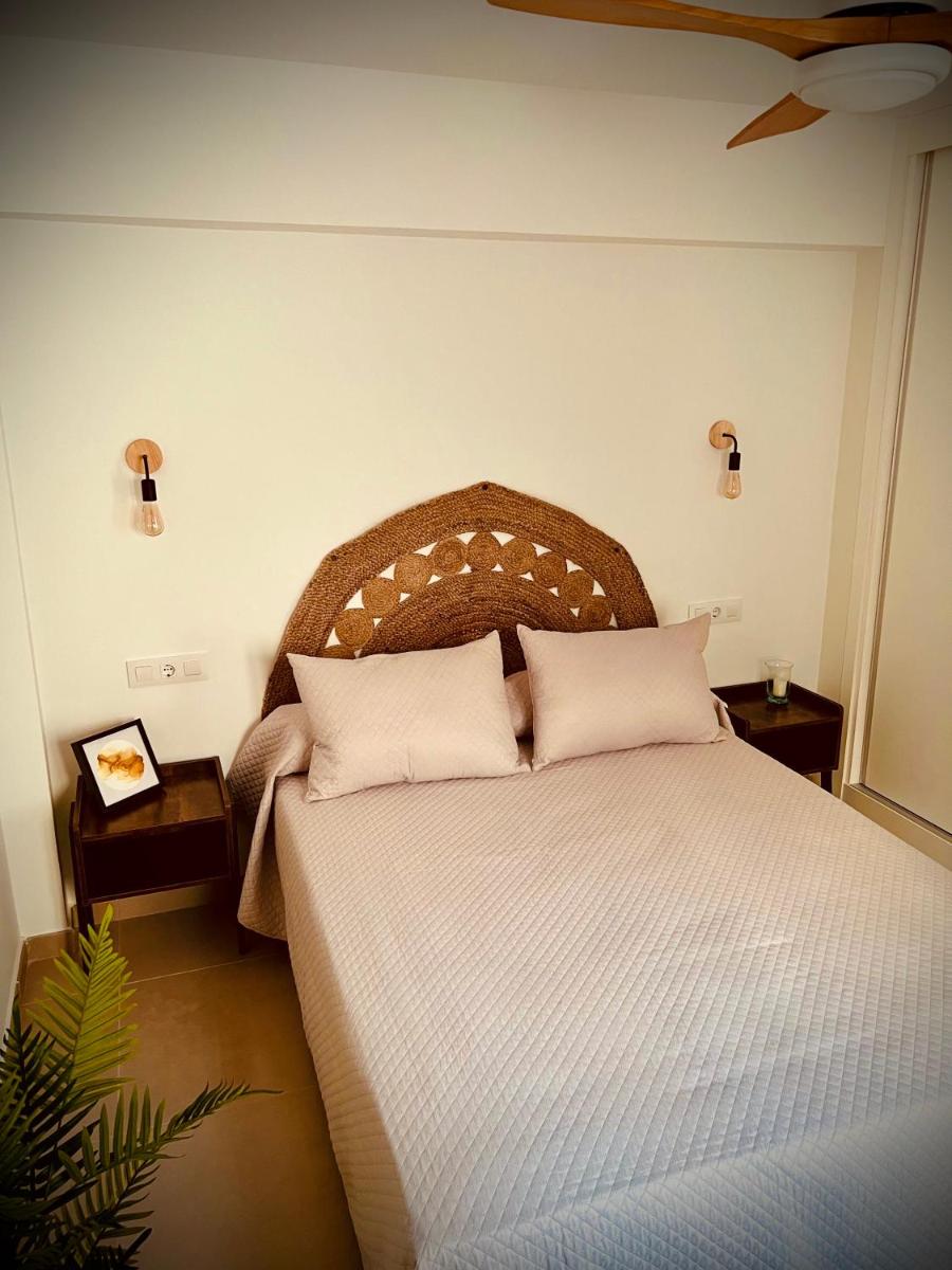 Beautifully decorated apartment with detailed amenities such as air conditioning efficiency, bed comfort, and inclusion of mineral water, beers, and olives in the fridge.