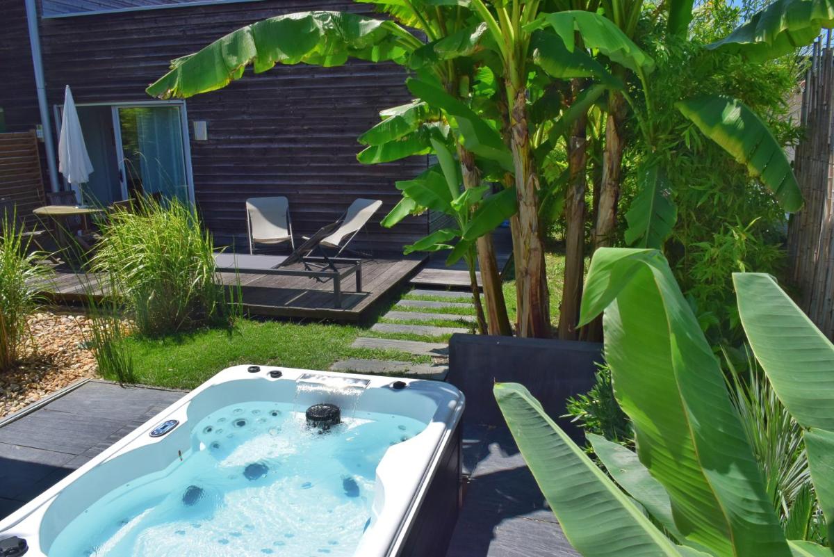 Fare Bambou provides comfortable accommodations in Gujan-Mestras, just 1.7 miles from Kid Parc and 1.8 miles from La Coccinelle. Guests enjoy amenities such as a hot tub, free Wi-Fi, and 24/7 concierge service. The apartment features a private terrace with garden views, equipped kitchen, flat-screen TV, and a washer/dryer. It's conveniently located near La Hume Beach, offering easy access via a 13-minute stroll. For outdoor enthusiasts, Fare Bambou boasts various recreational options, including a heated pool, spa services, and bicycle rentals. With its proximity to Bordeaux-Mérignac Airport (33 miles away), guests have ample opportunity for sightseeing, leisure activities, and water sports.