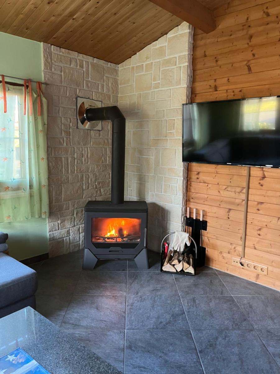 The outdoor spaces at Holzhaus Harz offer breathtaking views of the terrace and expansive garden, making these settings ideal for enjoying the warm summer evenings. The property provides an inviting seating area and a cozy fireplace, perfect for creating a relaxing ambiance during cooler months.