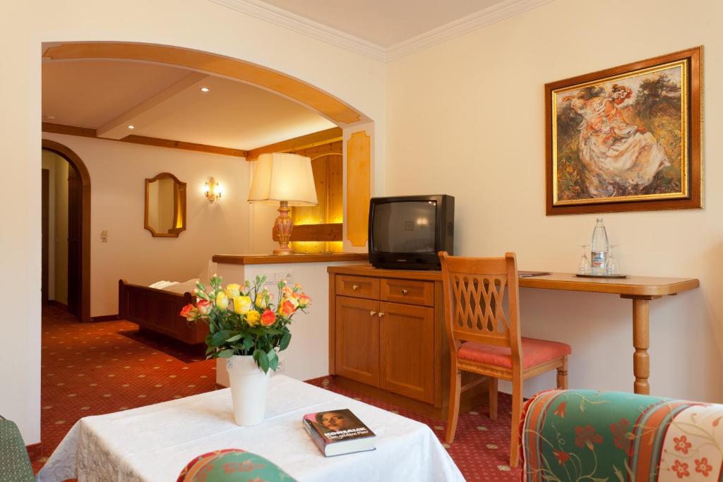 During warmer months, Hotel Neue Post provides an inviting setting with a terrace where families can relax and enjoy the outdoors, while the children will find ample opportunities to engage in playful activities. An exceptional breakfast buffet and a memorable five-course dinner with a dessert buffet await visitors, celebrating the rich gastronomic heritage of the region.