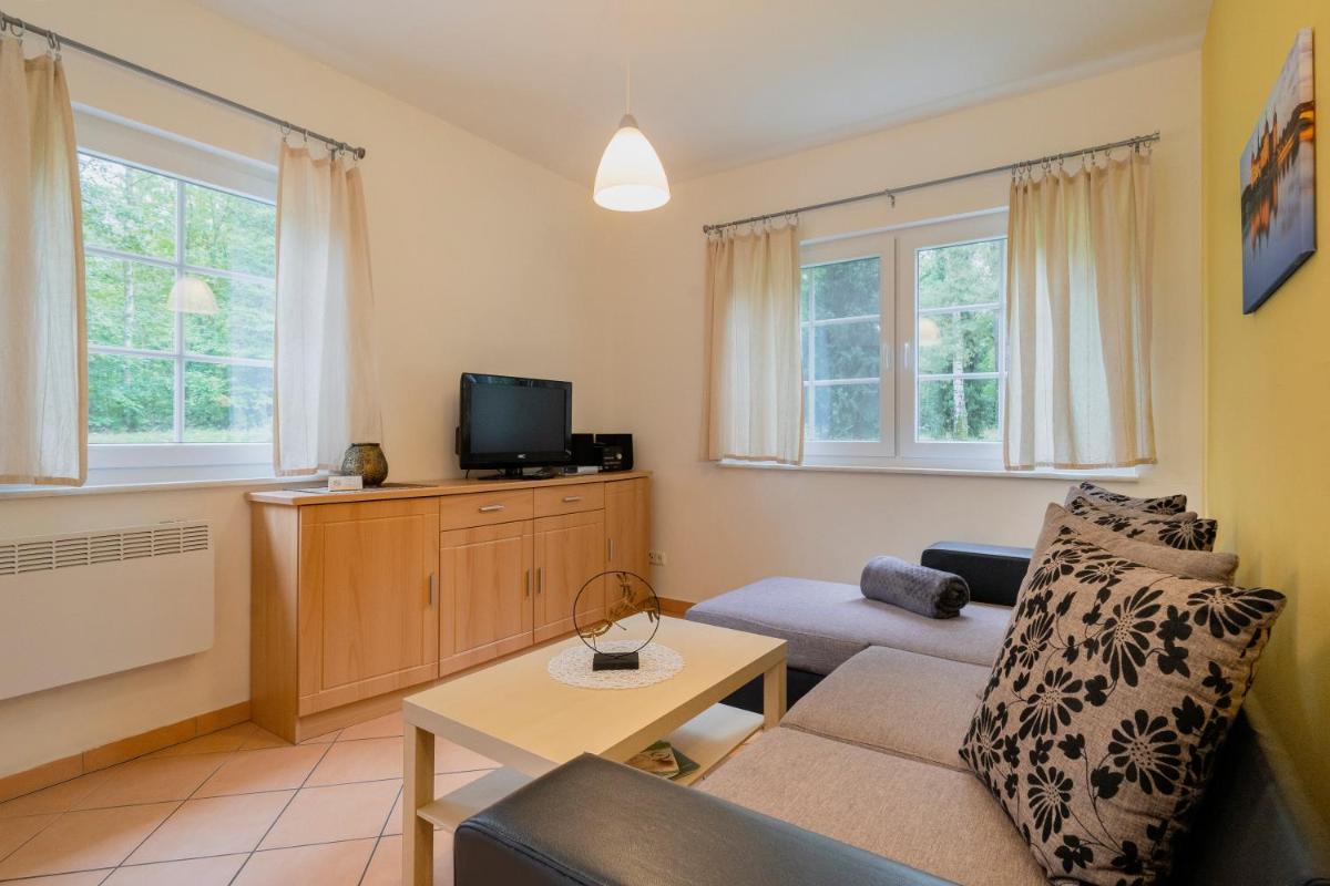 Ferienpark Bad Sonnenland offers an apartment in Moritzburg featuring a garden with a children's playground, sun terrace, and free Wi-Fi. Private access is convenient. Outdoor amenities include an apartment-specific fireplace and balcony. Units come equipped with a wardrobe and appliances such as a toaster, fridge, stove, and coffee machine. Nearby attractions include museums and sightseeing opportunities. The apartment is non-smoking, has parking space, and is pet-friendly. For more details, visit [website].