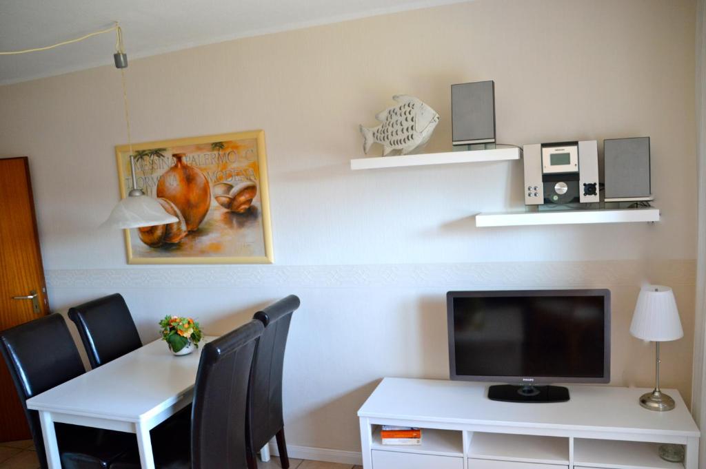 The Ferienwohnung Besslich Wattweg 5 in Norden provides free Wi-Fi coverage across the property, free parking, beachfront access, non-smoking rooms, a fully functional kitchenette equipped with a walk-in shower, a private balcony offering stunning garden views, a laundry facility, and a dining area with outdoor seating.