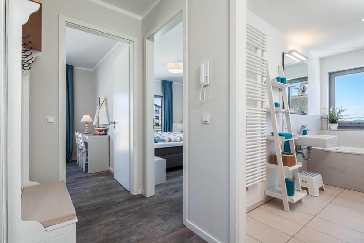 Enhance your experience further by indulging in luxury beyond measure – a private bathroom featuring a bathtub and a fully equipped kitchenette makes every moment truly memorable. The combination of these elements creates an atmosphere of elegance and tranquility, making Ostsee - Appartement Nr 80 "MeerSinn" im Strand Resort the ideal choice for those seeking both comfort and adventure.